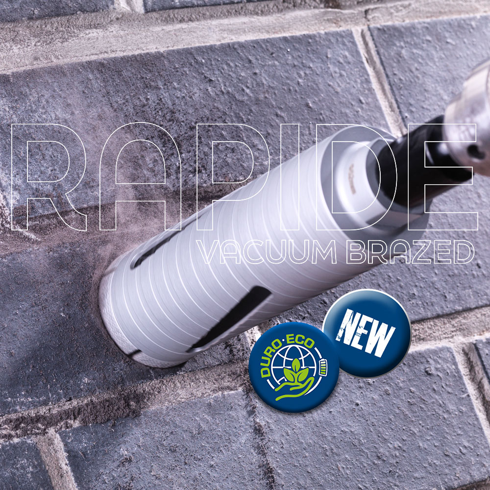 DDC-RAPIDE Vacuum Brazed Core Drill. 60% Faster than pro-segmented cores, 100% safer with no segment loss. Less machine wear, less user fatigue & less dust created. Consistent speed throughout. Drill incredibly fast in multiple materials.