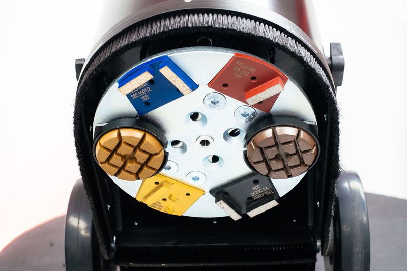- Flexible disc mount allows the machine to grind smoothly following contours of the floor including uneven expansion points
