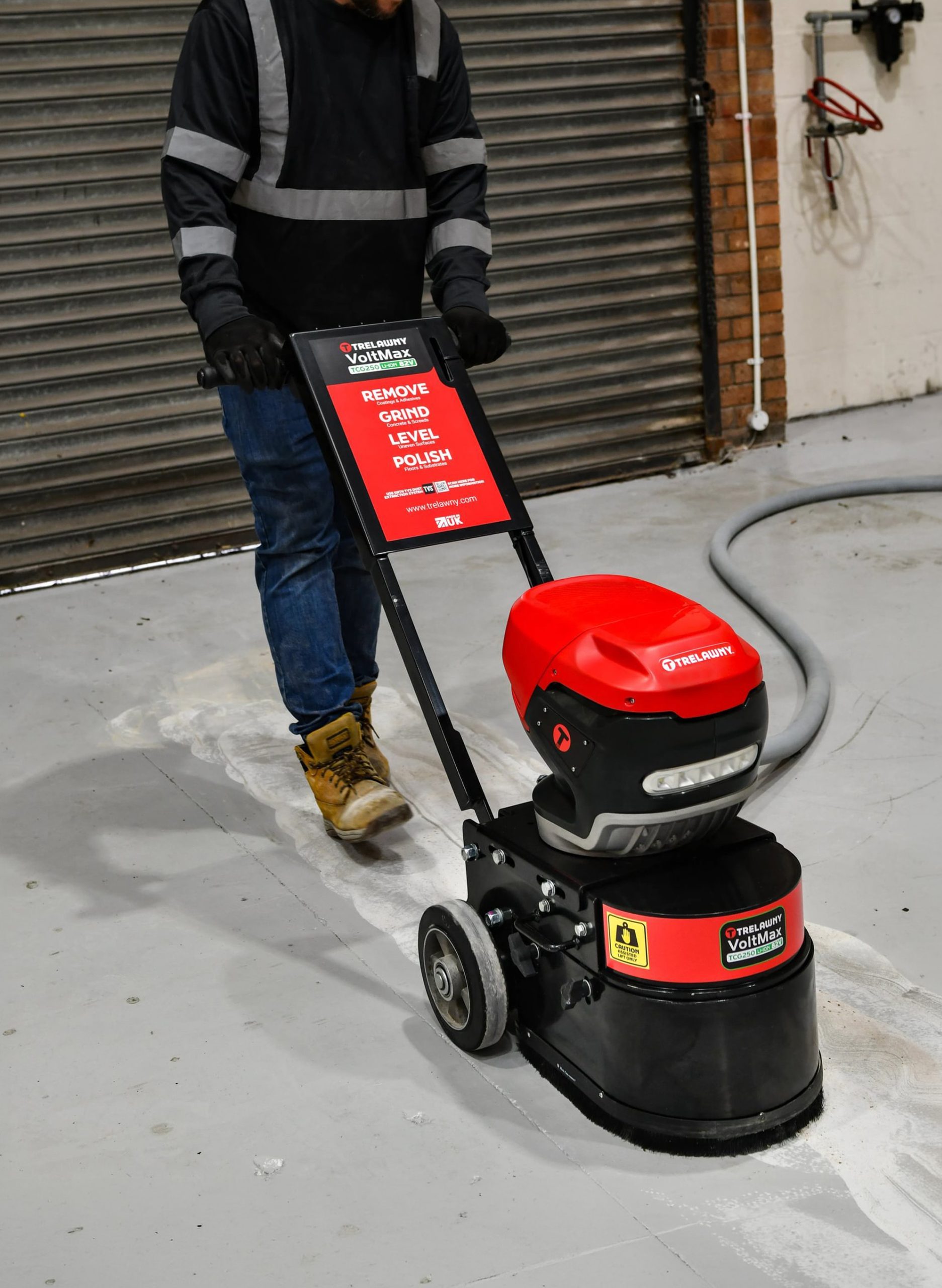 Trelawny TCG250 Floor Grinder available in petrol, 110V electric and new VoltMax Battery Powered versions, the machines are designed for the preparation and levelling of small & medium concrete floors. Also suitable for aggressive grinding applications.